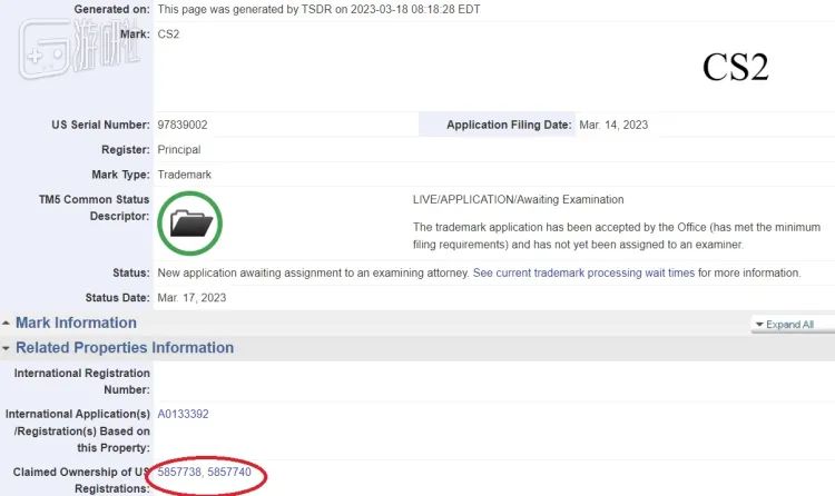 1. Valve向美国商标局提交了一份名为「CS2」的商标申请。在申请表的关联商标一栏中,Valve填写了另外两个游戏商标:《Counter-Strike》和《CS:GO》。