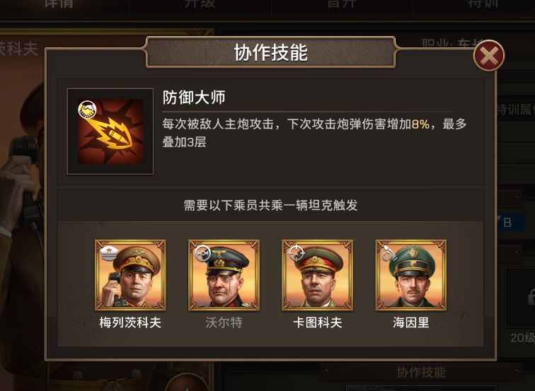 首先让我们看下新增协作技能"防御大师"以及对应的乘员。