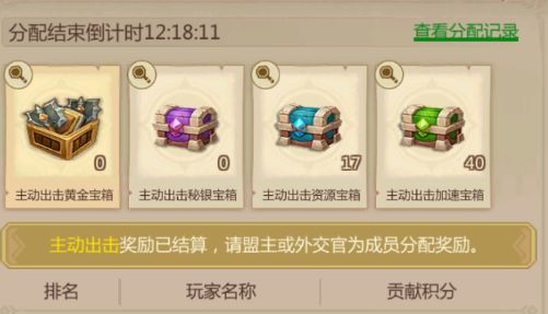 1. 游戏每周都会有联盟之间比拼的活动,按联盟总积分排名获得宝箱奖励,然后由盟主、外交官和招募官分配宝箱给盟内贡献最多的盟友。