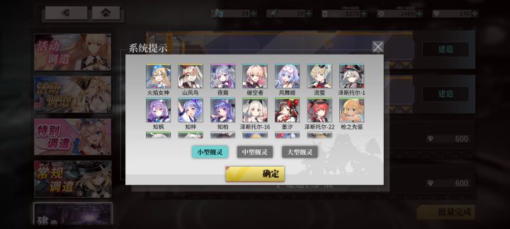 为什么会想起出攻略呢,因为今天建造刚出一个山风鸟才想起来的,虽然没有出T0的火焰女神,但我还是有必要说一说,这个建造新手时期还是尽量有晶币就像我一样开半小时和3000晶币的,因为这样子开出来的小型舰灵会是驱逐或轻巡,这两种的耗油量都会很低,适合开荒使用。最最重要的一点,就是会有百分之一的概率会出火焰女神,火焰女神现在除了充68会有概率出之外,就只能在这里面搞。