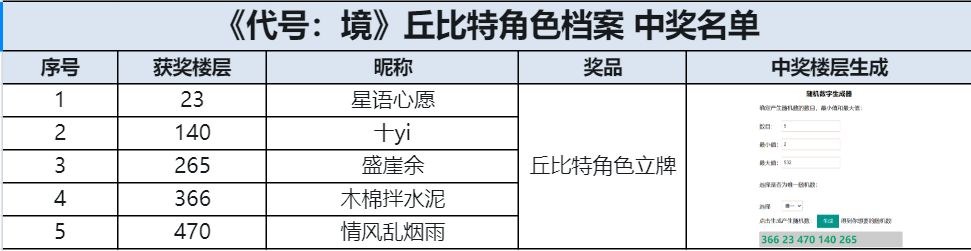 随机抽取5名玩家,赠送【丘比特立牌】。