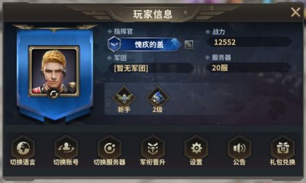 点击头像,将打开详细的玩家信息窗口,在此可以对游戏进行基础设置、切换登录账号、更换区服等操作。