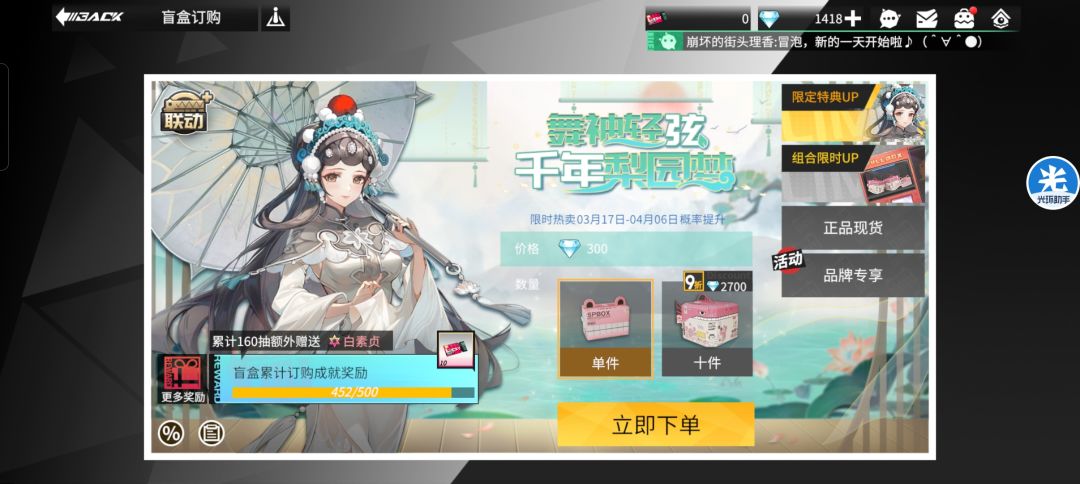 共抽452抽,抽出来8个白素贞,加上累抽2金1粉、联动商店1金、联动任务活动1金,再用印花换了4个,才到钻五