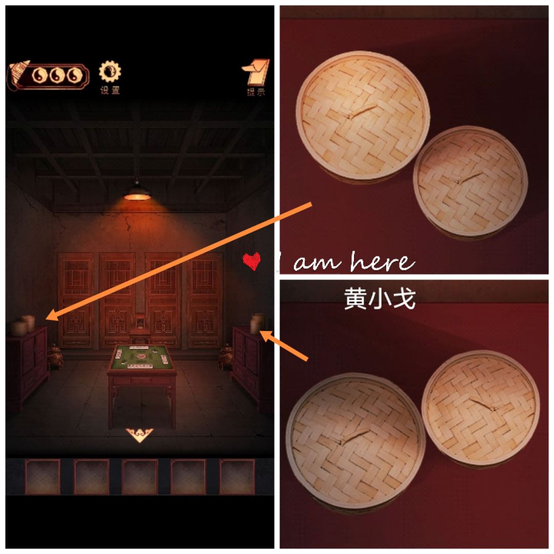 1.(神婆家-神秘房间1)点击查看两边柜子上的物品为4个竹笼