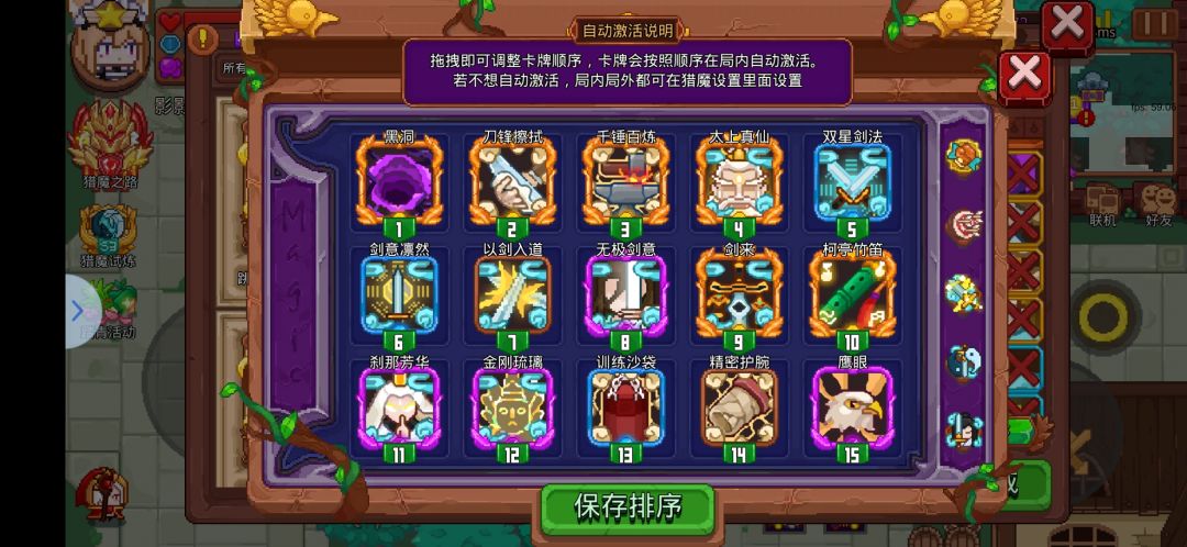 一般通关卡牌激活数在10张左右,我们选择10张就够了,后5张用来备用