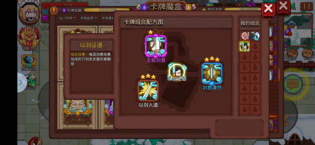 激活【以剑证道】组合后,剑意加攻击力会翻倍,也就是加两点攻击力
