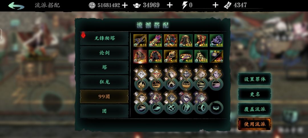 推荐红二邪后以前打团用。由于心法练度低,用一套副心法换武痴的增伤。