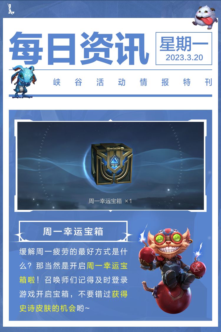 “快乐引爆 畅游峡谷”活动将于今晚结束!召唤师记得及时完成任务,将20个水晶秘钥和龙魂水晶免费领走~如果召唤师已把任务全都完成,也别忘了今日登录还可领取周一幸运宝箱哟~