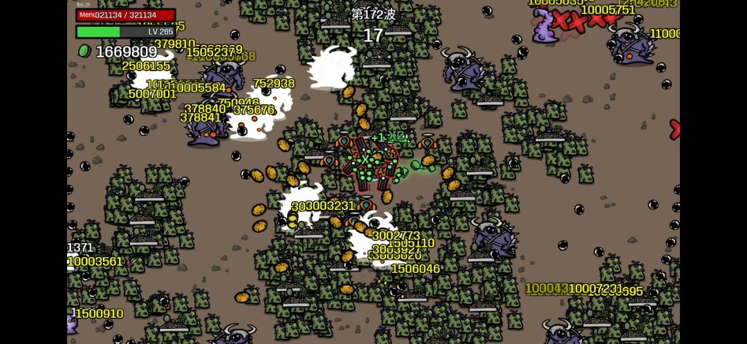 4、大后期,把爆炸范围拿到全屏,再拿开局生命减半道具,挂机即可。