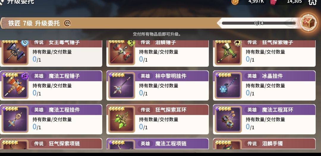 我发现在这游戏攻略好少呀,新玩家太容易走弯路了,比如铁匠升级需要材料里面就有不少被我之前分解了