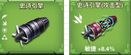 上图右边为制造后的图示,可以看到引擎左边只有1个图标,为攻击型飞机的图标,同时在引擎名称后面也可以看到该引擎安装的飞机类型,与图标一致。