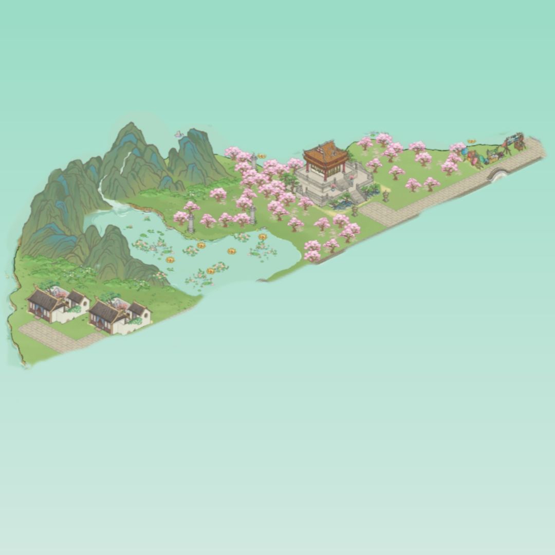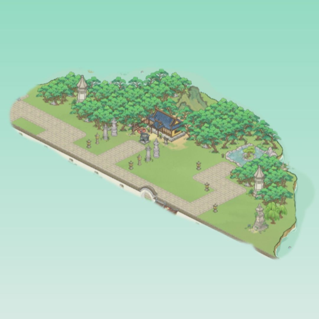 营造一种山顶道馆 周围树丛丛的感觉