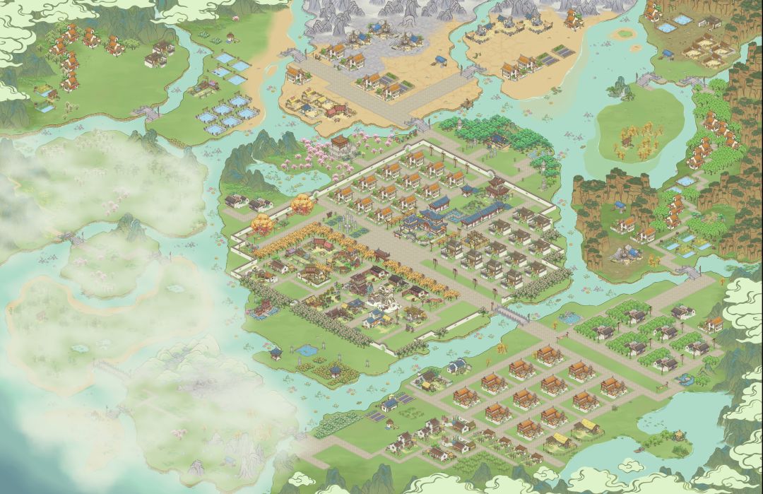 因为地图没有开全 目前为止就是士农工商这个顺序安排的远近 之后也不会有大的改动 会把树种满 景点添加完 希望支持一下呀