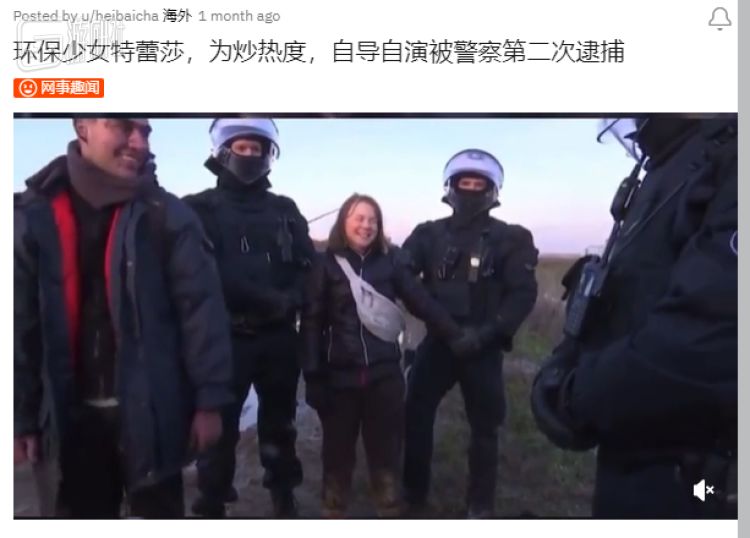 两个月后,格蕾塔要求挪威拆除风力发电机组,保护动物栖息地,又再次被挪威警方带走,在全球观众面前上演了一出大戏。