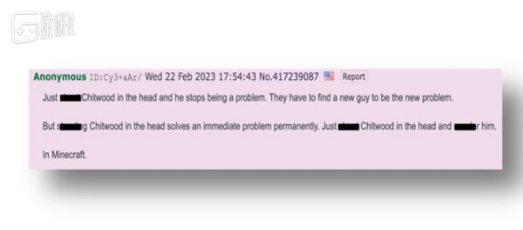 随后,一位网友就毫不意外的大放厥词了。他在4chuan的poL板(Politically Incorrect的缩写,意为“政治不正确”)上称要爆了这位警长的头,“只要一枪爆了头,他就不再是个问题”,还补充道“向他的头开枪就能解决眼前的问题”。有趣的是,他还在这段话的结尾补充了一个“In