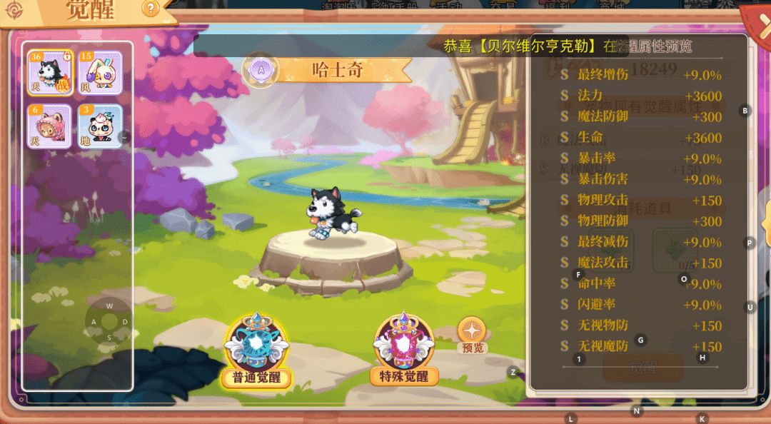 宠物提升战力方面很多,今天小布来给大家分享一下宠物觉醒吧。宠物觉醒分为2种,一种是普通觉醒,一种是特殊觉醒,不同觉醒消耗的材料也不一样。觉醒后可改变宠物属性,宠物觉醒属性最好的就是S级属性。