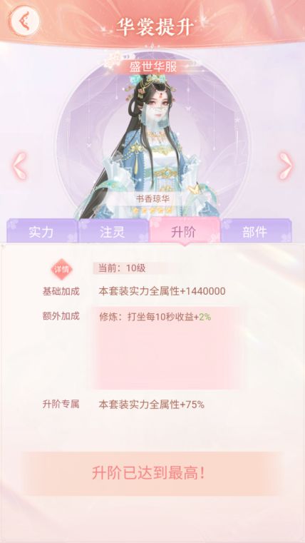升阶:除了基础的实力加成之外,每升一级额外增加0.4%吐纳收益,最高10级,加成4%