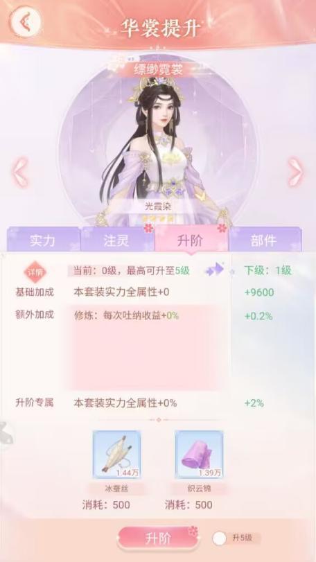 升阶:除了基础的实力加成之外,每升一级额外增加0.2%吐纳收益,最高10级,加成2%
