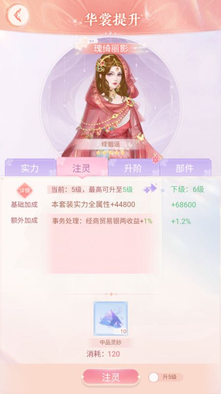 注灵:除了基础的实力加成之外,每升一级额外增加0.2%经商银两贸易收益,最高20级,加成4%