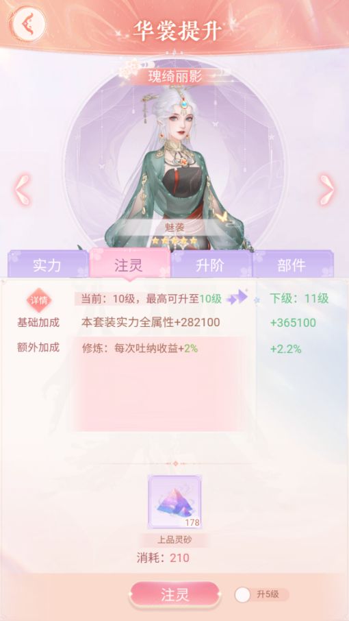 升阶:除了基础的实力加成之外,每升一级额外增加0.2%的滋补灵气收益,最高10级,加成2%