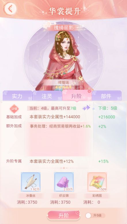 升阶:除了基础的实力加成之外,每升一级额外增加0.2%经商银两贸易收益,最高10级,加成4%