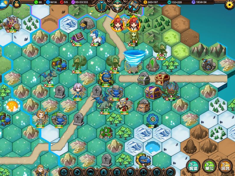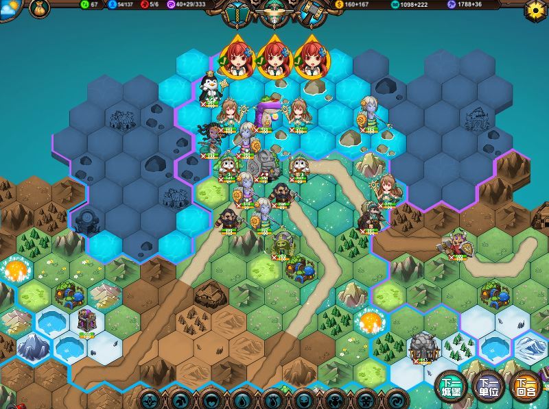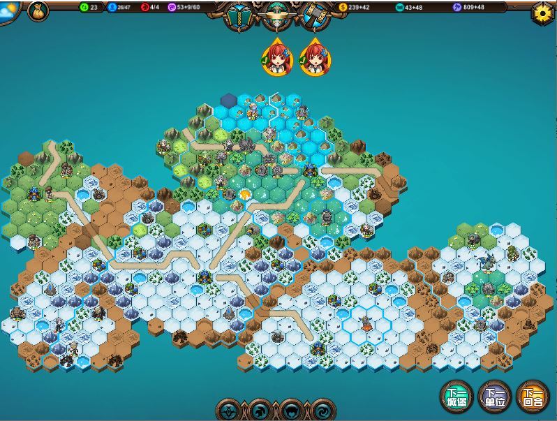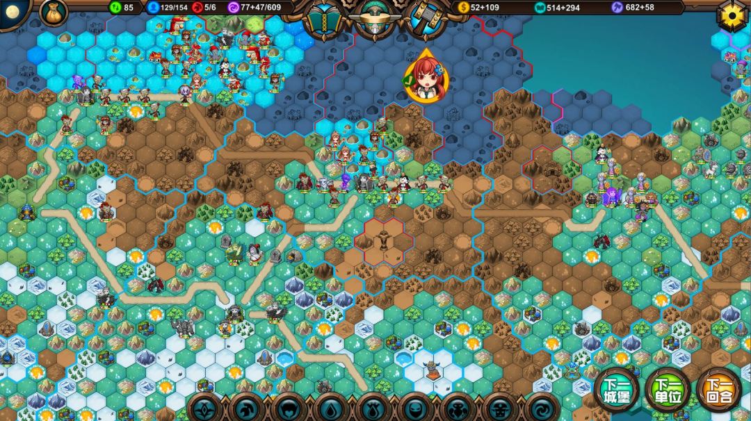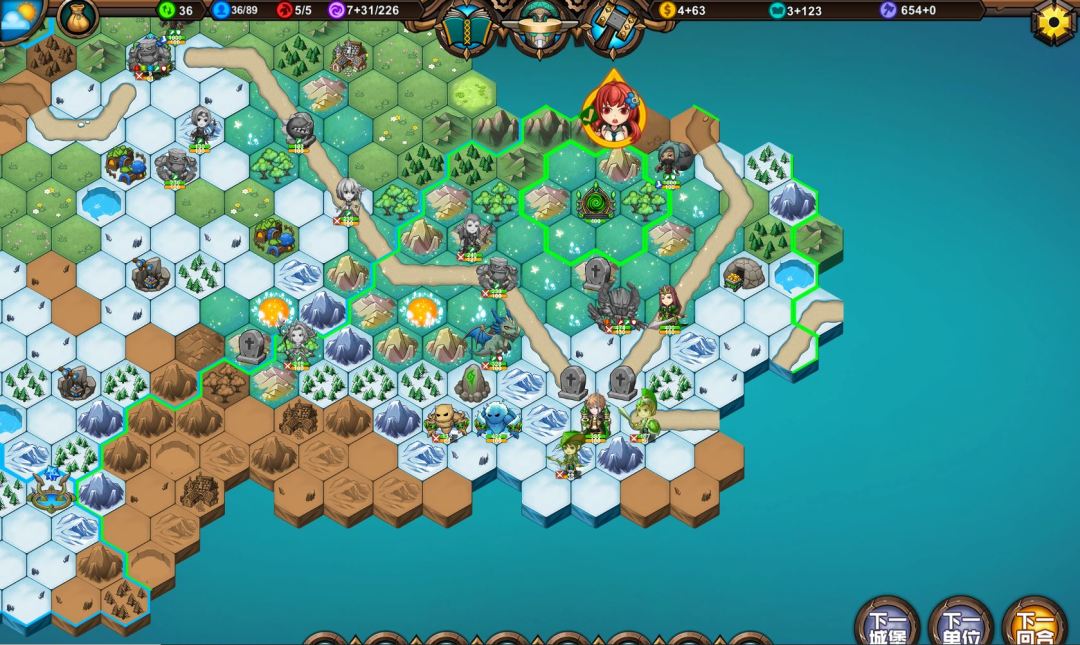 🍏运气不错,捡箱子触发了免费资源,英雄时代提前点出,因为没咋造兵钱完全够,8回合出大树9回合出女皇,这你拿什么挡啊,橙色马上要寄了。