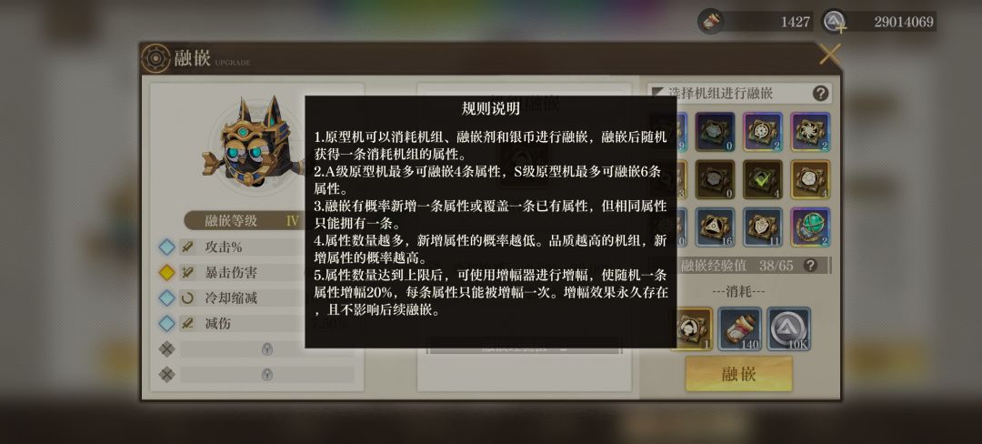 (再吐槽一次真舒服)好了咱进入正题,虽然原型🐔系统不是让人很满意,但它给的提升还是有的,现在我们还是关注它的词条融嵌规则,看看怎么才能比较稳定地获得想要的词条。