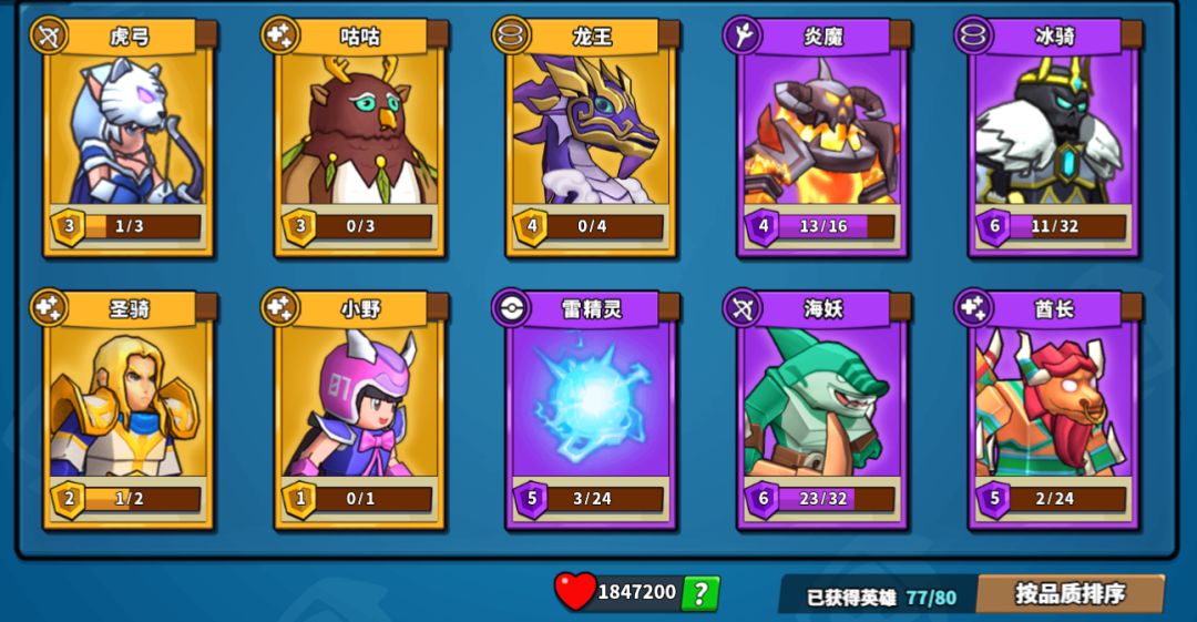 开局阵容:咕咕、圣骑、小野、酋长、海妖、龙王(不满),其他都满(炎魔、冰骑、虎弓不上)