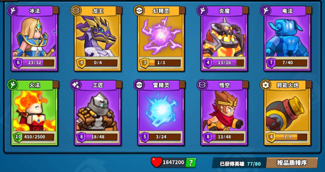 A组阵容:冰法、龙王、炎魔、电法、火法、工匠、悟空、邪能火炮、幻精灵、雷精灵