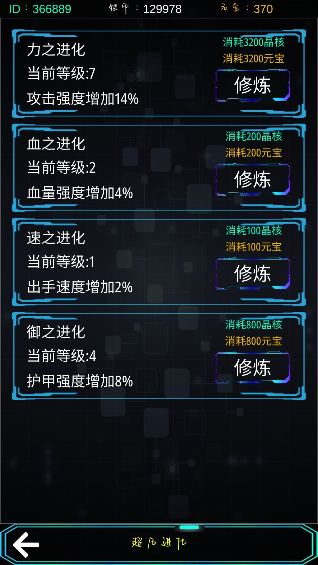 提醒下:主宰升到16就不要再升了,与其相对应的超凡进化升到8后可以根据你自身需要的属性升级超凡进化。