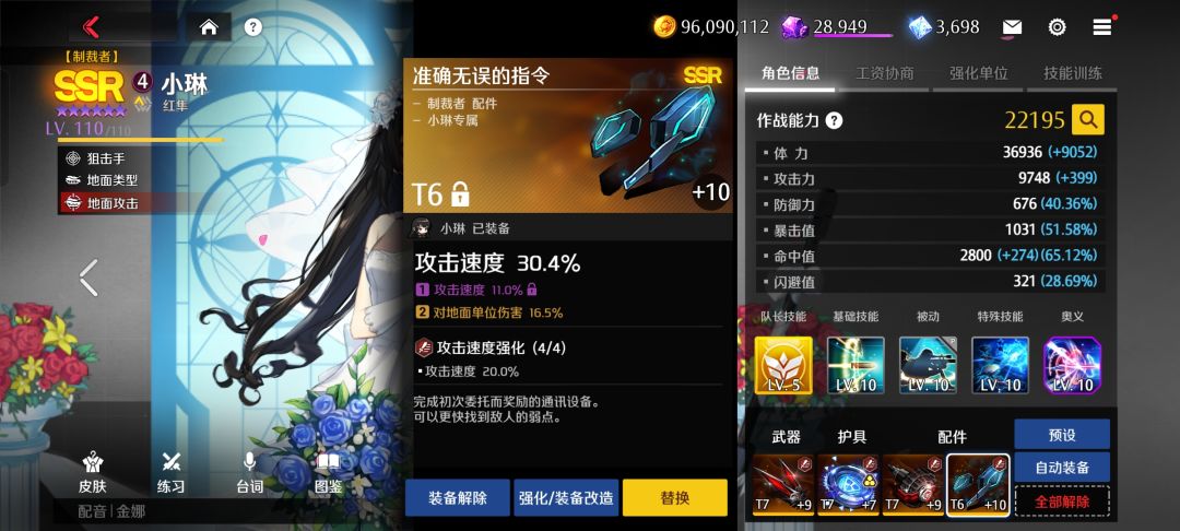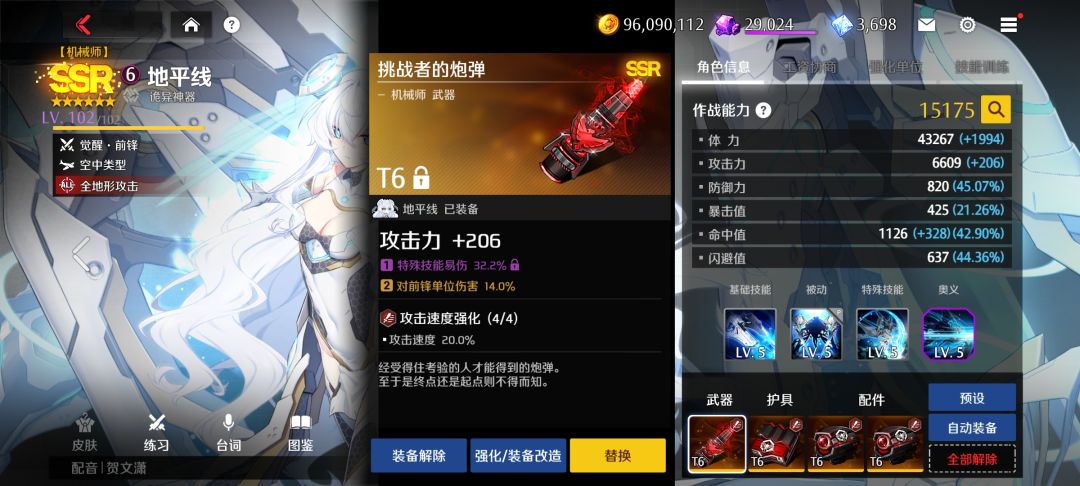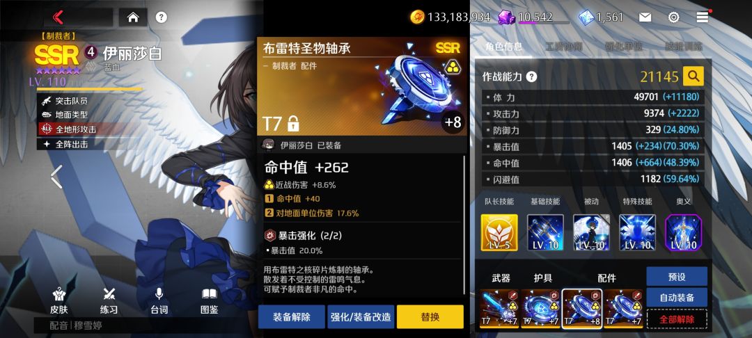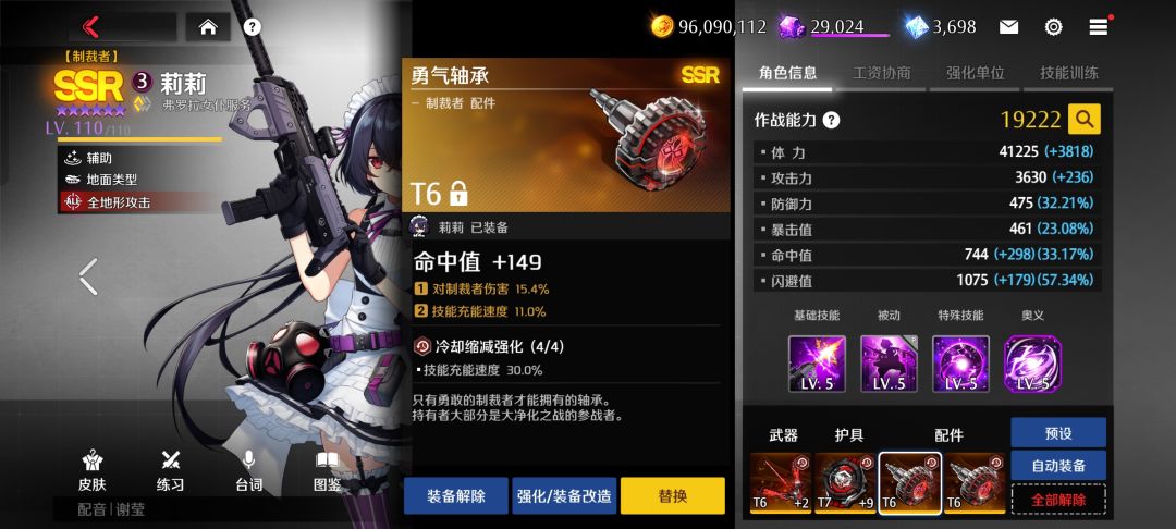 进阶装备如图为布雷特2+2(攻击+暴击)潜能近伤和攻击。或者偷家队爆伤套潜能爆伤。对比殿堂子弹,突击和狙击都可以轻松秒杀,并且踩前排前锋单位伤害也不俗。且极限命中为48(第一副词条洗命中,偷家队洗爆伤)。