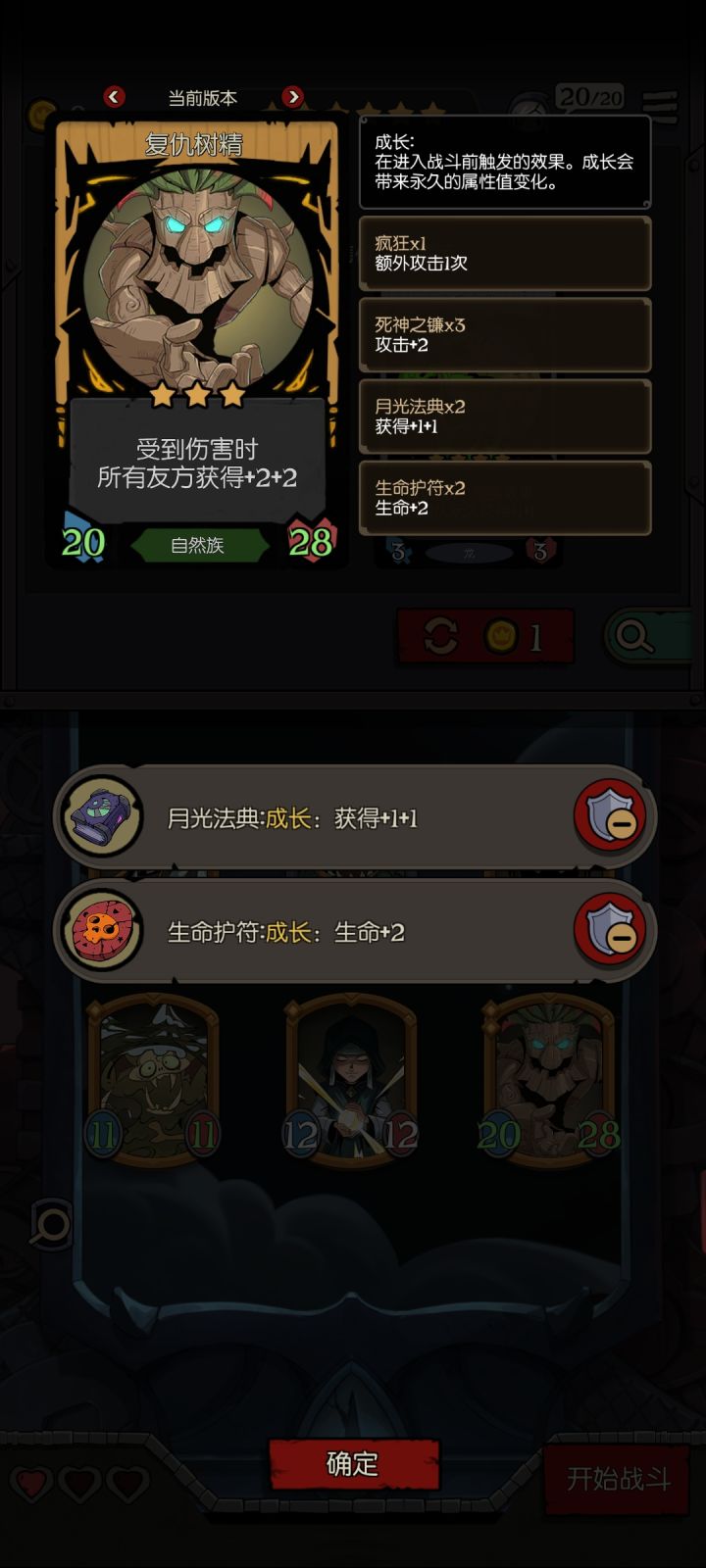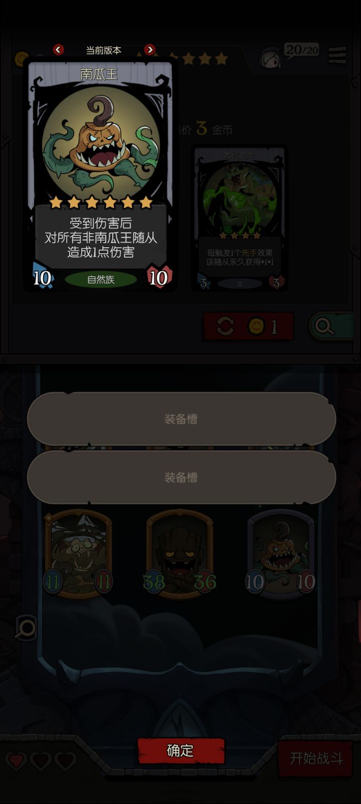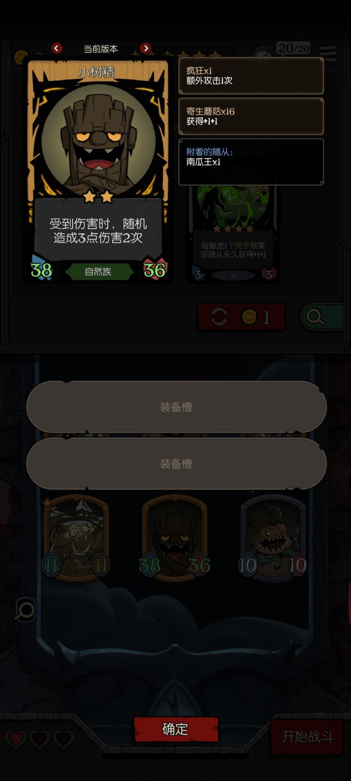 估计是附身商店拿的南瓜王附身了小树精,检索字样就是小树精了,等于一个小树精和南瓜王无限互相触发效果,但场上还有受伤全体加属性和回血的卡,导致小树精和南瓜王两个家伙永远死不了。应该写一个敌方死完就结束己方循环的代码。
