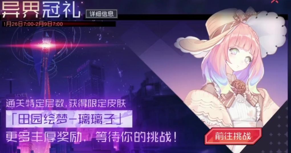 ※活动说明1、同一赛季的异界冠礼活动分为「异界冠礼·春」、「异界冠礼·夏」、「异界冠礼·秋」、「异界冠礼·冬」四期,同期的关卡根据难度划分为普通、困难及地狱三个难度模式。指挥使通关当前难度模式后,将自动解锁下一个难度模式。通关「异界冠礼·春」中的关卡副本,可获取包括活动限定时装在内的丰厚奖励。