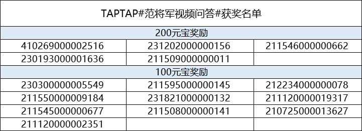 恭喜以下主公获得本次奖励,奖励会在14个工作日内发布到对应游戏ID,请注意查收