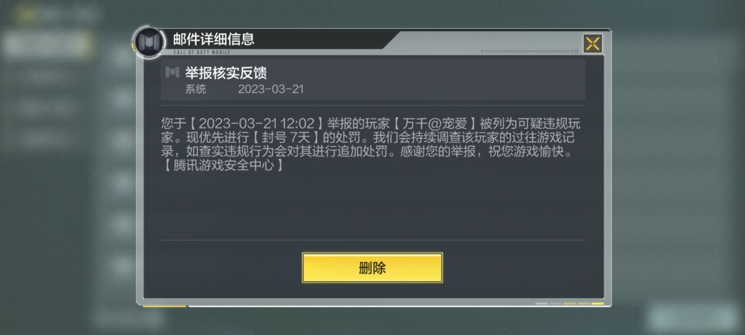 举报核实封号7天