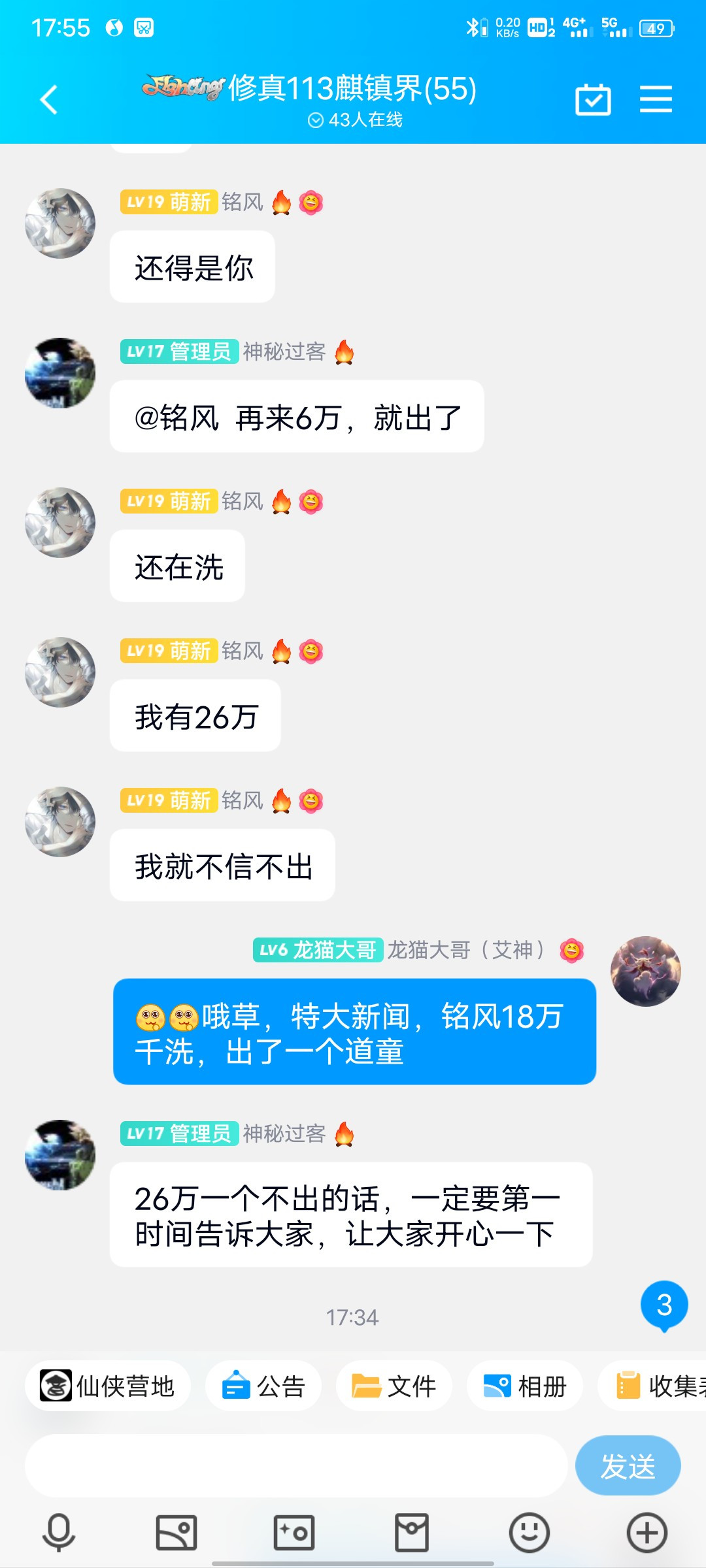 接下来,让我们热烈欢迎一下,麒镇界铭风少侠,