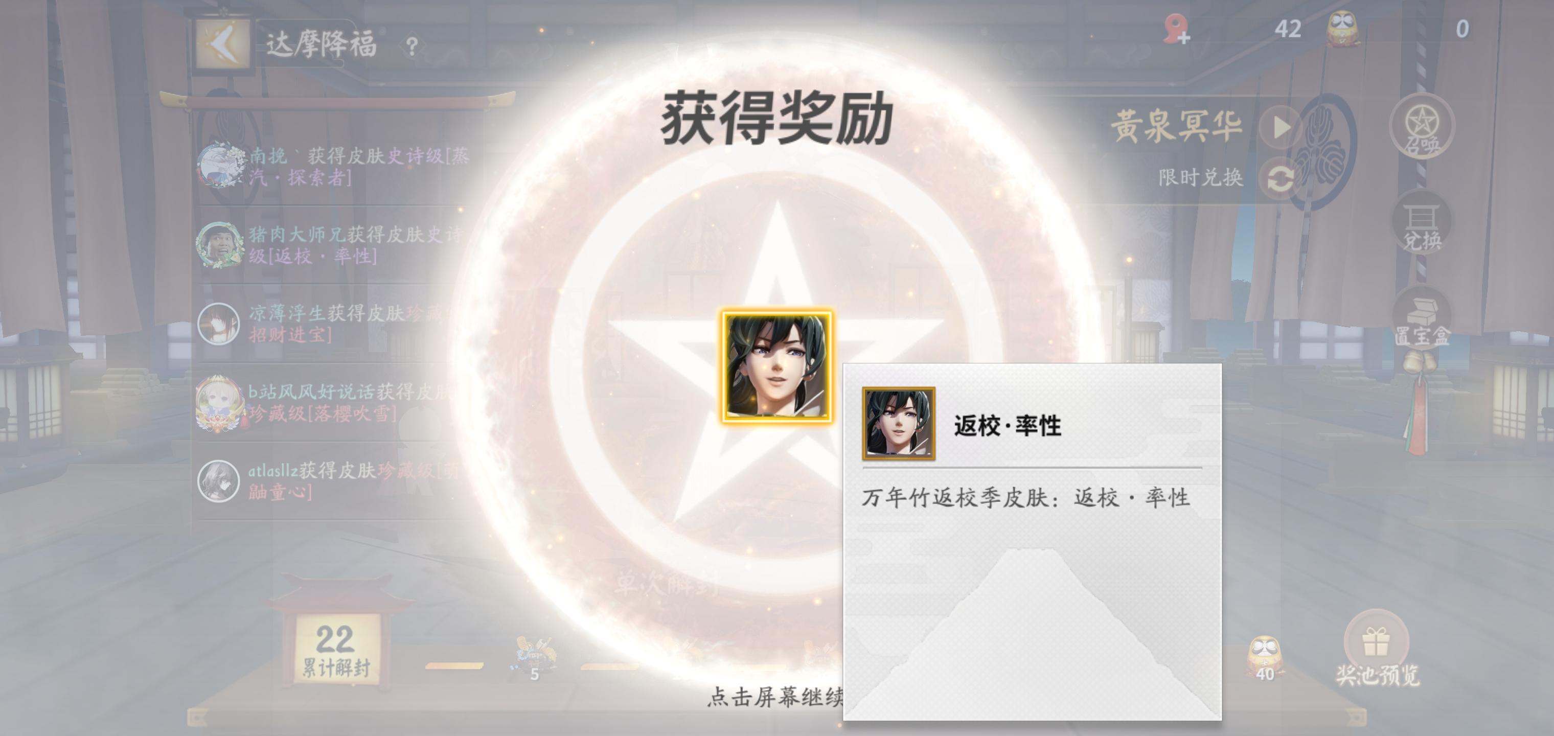 价值最贵的得一个暗黑组的妖琴师,多送一个返校季的万年竹,然后90记念币得一个跳跳妹的史诗,大家觉得68值了吗