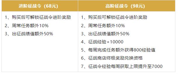 本次的进阶征战令同样分为【进阶征战令】与【高阶征战令】两种类型。