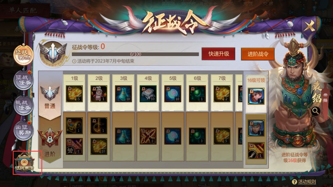 进阶奖励:达到指定征战令等级且购买了进阶令后可领取。
