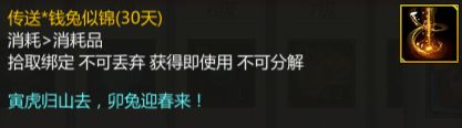 当征战令等级达到2级、26级时,能够获得传送*钱兔似锦(30天)。