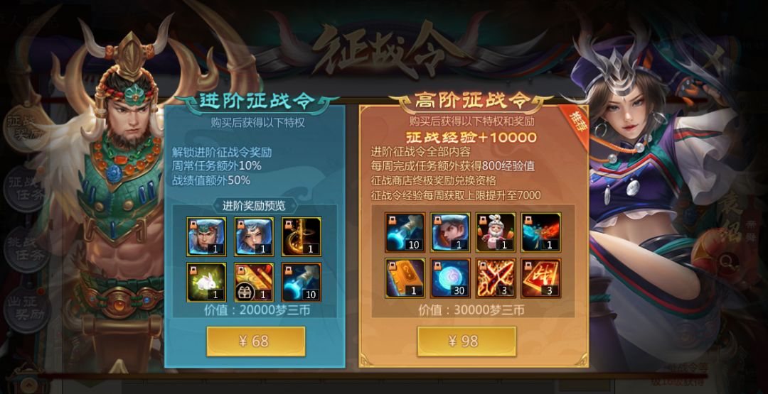 ps:如果已经购买了【进阶征战令】,希望升级【高阶征战令】的仙术师可以通过购买界面补足差价进行升级