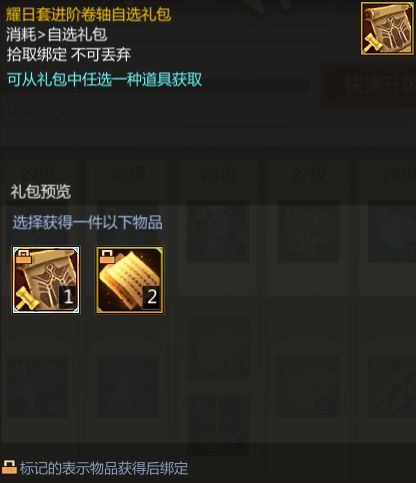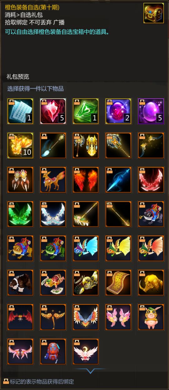 此外,在1级就可以获得橙色装备自选宝箱(第十期)与暗金+10卷轴(衣)。