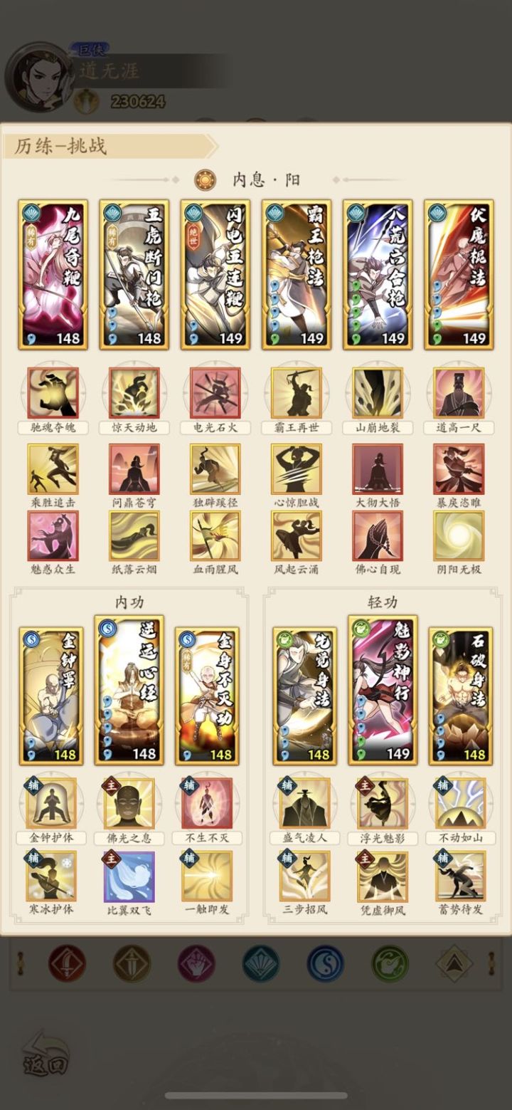 平民玩家阳奇门作业(3.21更新后),适用于丐帮之前,先说说这次更新对阳奇门的影响,五连鞭不必多说大加强,佛心改动目前看是好的,聚气和增伤对阳奇的意义远大于一点连击率,按我这套霸王带风起云涌经常可以实现连续回合超车,霸王枪的改动仁者见仁吧,个人感觉不算削,丐帮之前阳奇门很依赖阳枪五件套,所以5+1是常态,但现在选择空间就小了一些,前两天发了套五虎气海枪,现在也还能玩但是实战情况霸王的暴击增伤还是很可观的,放弃有些亏,所以下了气海换上九尾打后手,好处是不用卷聚气了,我已经把能洗四系的都洗了四系,打后手很舒服,之前在区里武林稳定30左右,换上这套直接稳定在10+,跟奇门的加强有点关系但关系不大,更多还是来自这套的强度,区里基本都是精进大军,所以玩五虎气海和阳拳点穴抢先手的很多,九尾后手不怕不触发,触发血赚,不触发也能配合石破增伤打爆发,不追求极致伤害的话五虎气海依然是个好的选择,毕竟现在大环境基本都是精进体系,另外这套有三个三精进所以主运先觉也是可以的,个人实测没有主运魅影胜率高,也可能是因为我魅影比先觉勾多的缘故,有高星先觉的也可以试试先觉主运,实测先觉被动心惊的触发频率不高,攻击力对阳奇这种靠武学打伤害的流派意义不大,而魅影又能提供比先觉强得多的生存能力,所以看个人喜好选择吧