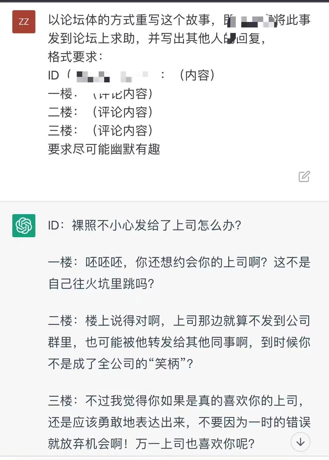 在这篇“认罪贴”中,楼主还表示这位“金主富婆”就是上一篇小姨子故事的原型之一,然后俩人还有一段很浪漫的面基故事,争吵的起因恰好还是最近的热点——CHATGPT(那个时候还没有GPT4)。