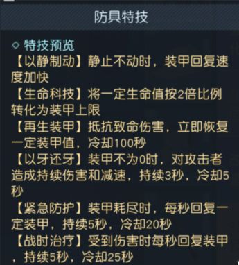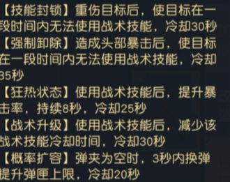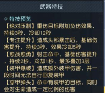 最后一个是特技,就是给我们的武器也加上技能,这里主要是是要安装芯片特技,即给我们的武器也套上一堆增益buff。这里是网上常见的特技技能,大家一起来看一下吧!