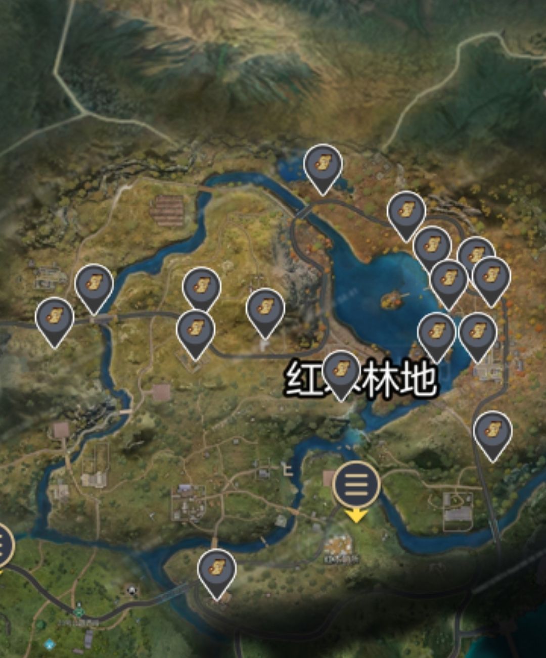 而且打开地图我们可以看到在地图上有几条蜿蜒的公路,大家结合现实想一想,公路旁边是不是会种很多木头?也就是树木来绿化环境,所以想要获取木头资源,我们可以沿着这些公路砍树,不仅资源不灭,而且还可以循环获取。就比如玫瑰小镇,靠近公路,所以我们可以从玫瑰小镇附近下手。