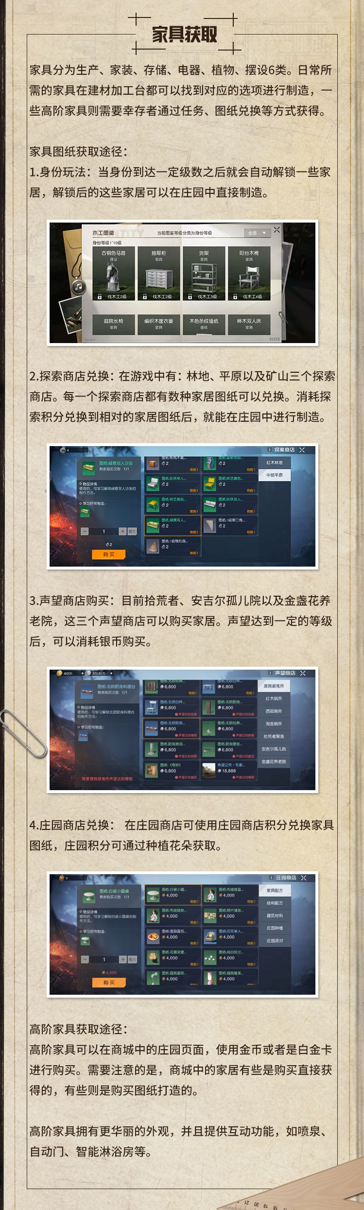 (图里有特技介绍和庄园装饰,来源于官方,质量保真保好)