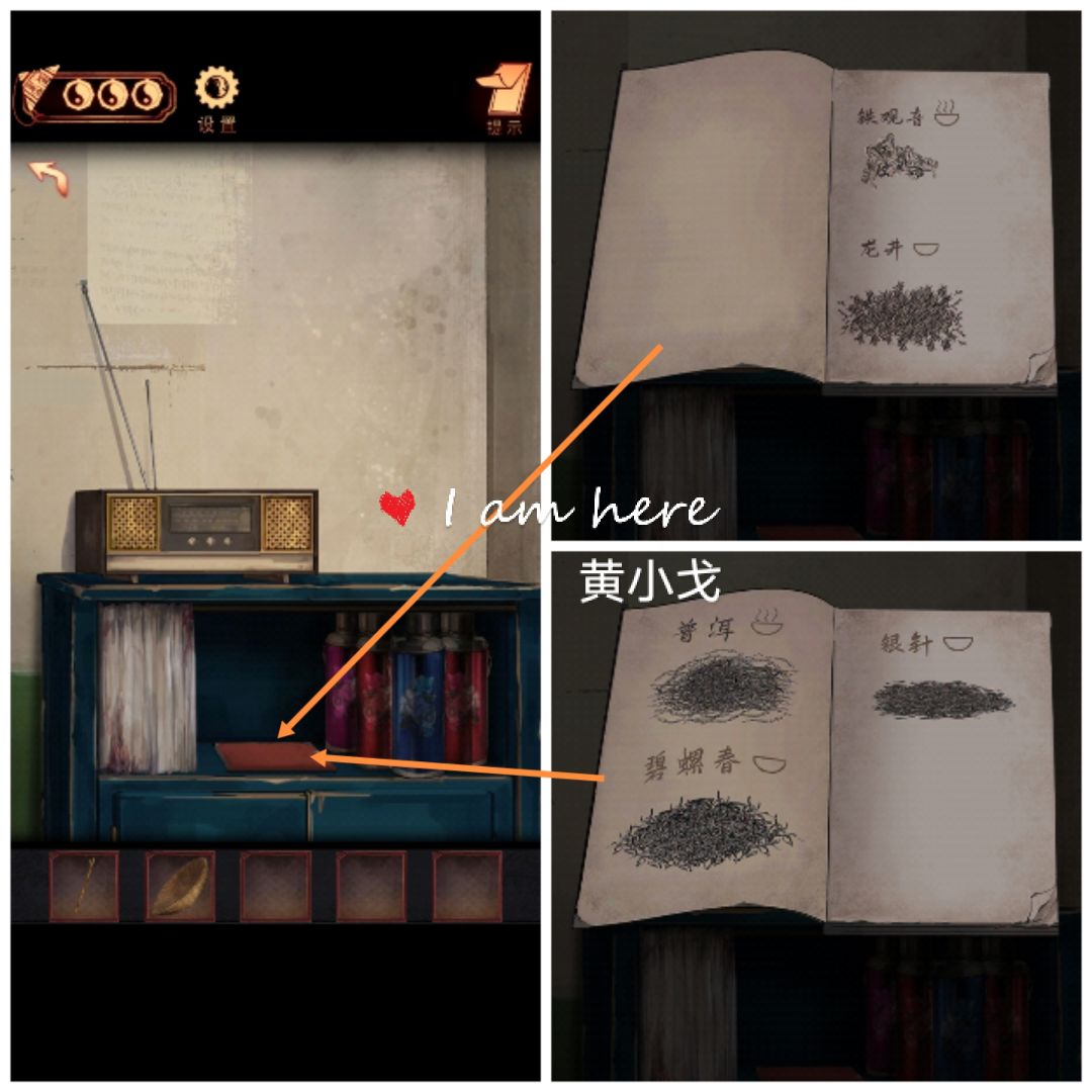 12.点击茶箱,根据茶杯上的花纹顺序点击茶箱上的花纹,打开茶箱