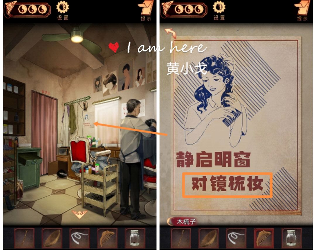 21.点击镜子旁边的海报,获得线索:对镜梳妆