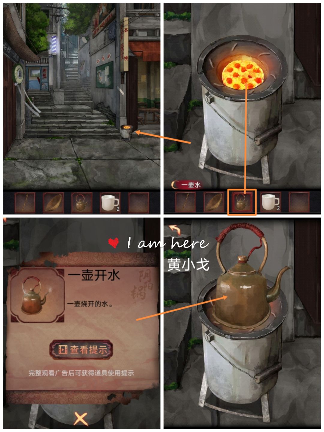 10.(巷子)点击门口的蜂窝煤炉,放上【一壶水】,烧开,获得【一壶开水】